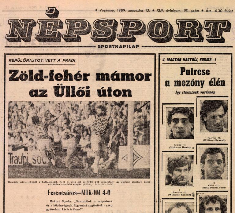 „A nyitóforduló legnagyobb érdeklődéssel várt erőpróbája az Üllői úti örökrangadó. A példásan kemény nyári felkészülés lerítt a Ferencvárosról a szombati örökrangadón. A zöld-fehérek a szombati kánikulában pokoli iramot diktáltak az eső félórában, egyszerűen állva hagyták a védekezésében alapvető helyezkedési hibákat elkövető MTK VM-et. Amikor azután 22 perc alatt meg volt a három bajnoki ponthoz szükséges előnyük, kicsit kocogósabbra fogták a tempót, de ebben a kilencven percben vitathatatlanul, utca hosszal verték meg ősrégi riválisukat. – Minden tekintetben profi szellemet akarunk kialakitani, ez annyit is jelent, hogy versengést hirdettem minden posztra, tehát nincs bérelt hely a csapatban – mondta Rákosi Gyula vezetőedző…Nyilasi Tibor: – Az eredmény önmagáért beszél, nagyon jól játszott a Fradi. Nekem Bánki játéka tetszett a legjobban.” (1989 – MTK-VM)