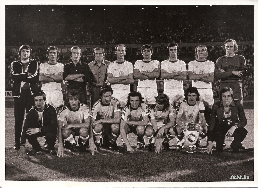 1975, Állnak (balról): Kollár, Vépi, Martos, Mucha, Juhász, Pusztai, Rab, Megyesi, Domján. Elől: Takács, Kelemen, Nyilasi, Szabó F., Ebedli, Bálint, Magyar