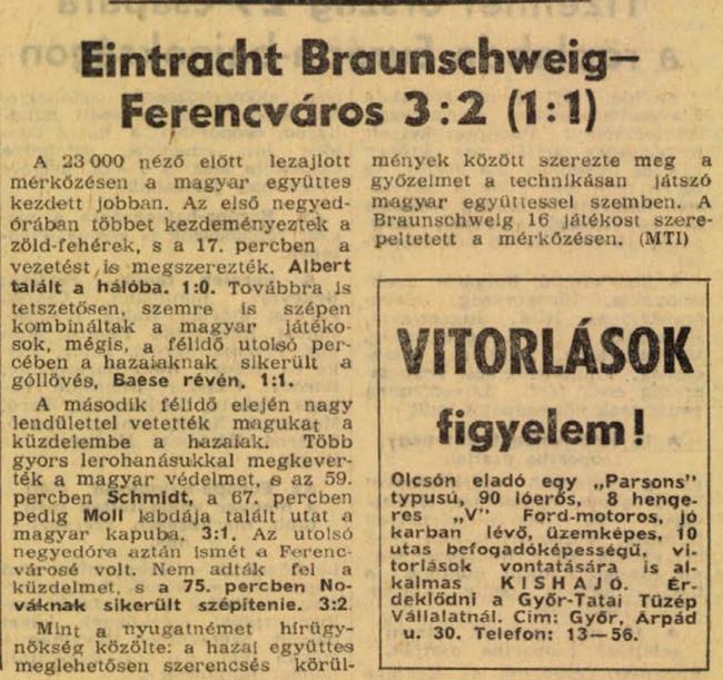 1963. Eintracht Braunschweig – Ferencváros 3:2, nemzetközi barátságos