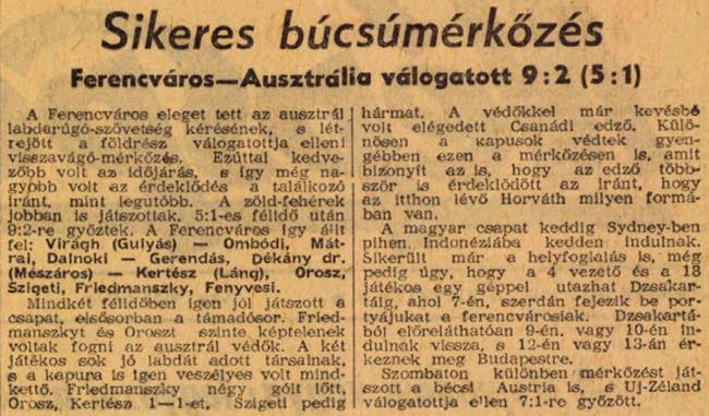 1957. Ausztrália – Ferencváros 2:9, nemzetközi barátságos