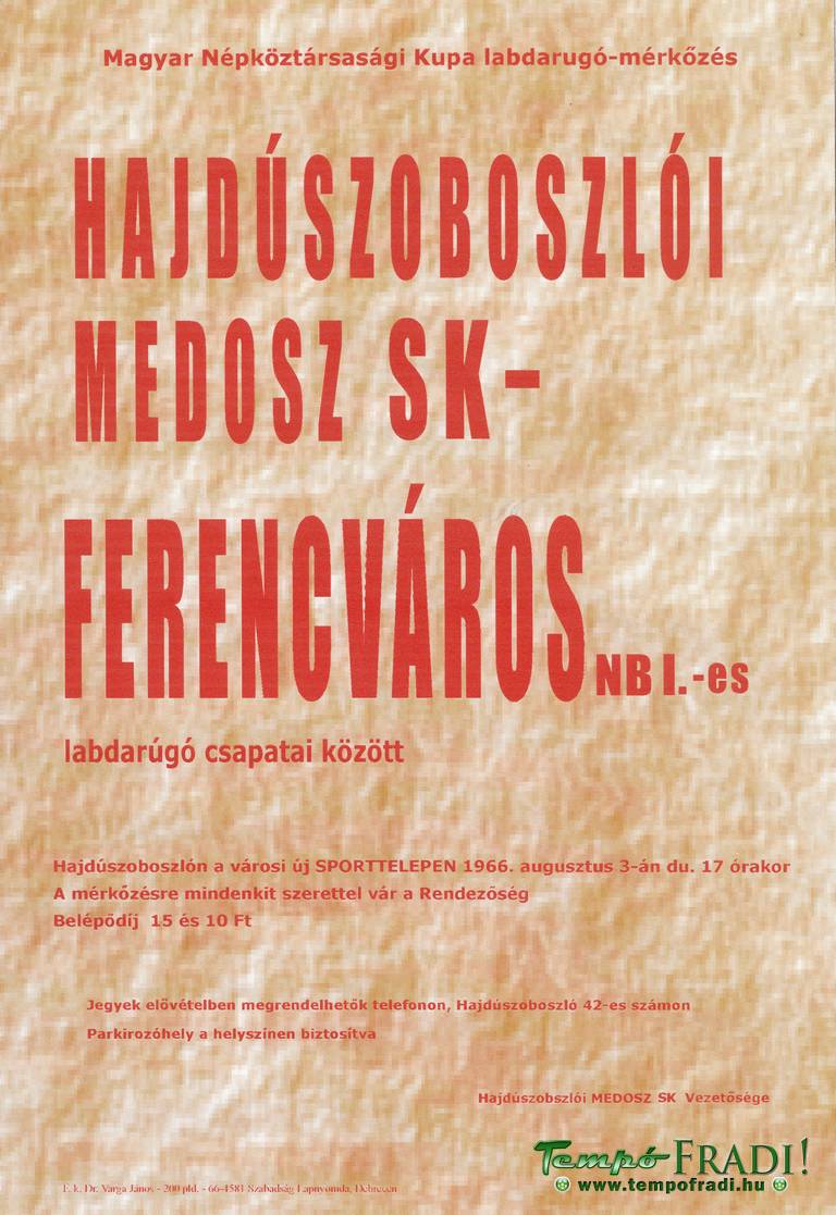 1966. Hajdúszoboszlói MEDOSZ – Ferencváros 0:9, MK