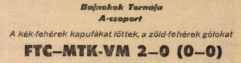 1976. Ferencváros – MTK-VM 2-0, Bajnokok tornája