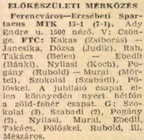 Ezen a napon ült először az FTC kispadján díjmérkőzésen:
