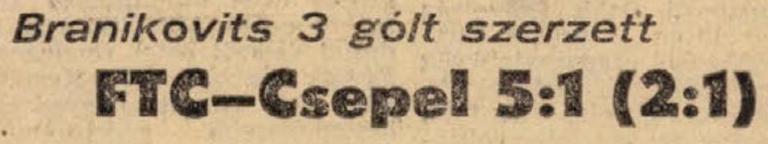 „Nem volt sétamérkőzés a Ferencvárosnak ez a mérkőzés. Az első félidőben a BSzKRT nagyszerűen tartotta magát és gól nélkül tudta kihúzni. Fordulás után aztán, amikor a zöld-fehérek nagyon rákapcsoltak, egy-kettőre eltüntette a villamos csapatot a pályáról. Pedig lelkesedésben ekkor sem volt hiba náluk. A Ferencváros jól játszott, csak egy kissé könnyen vette a mérkőzést. Látszott, hogy biztos a győzelemben és amikor komolyan vette, akkor hamarosan eldöntötte a mérkőzés sorsát. Jól működött a gépezet, különösen a védelem játszott kitűnően. A támadósor a tizenhatosig sok szép vezetett, de a kapu előtt szünet után boldogultak.” (1944 – BSzKRT)
