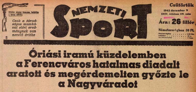 1943. Ferencváros – Nagyváradi AC 1-0, NB1
