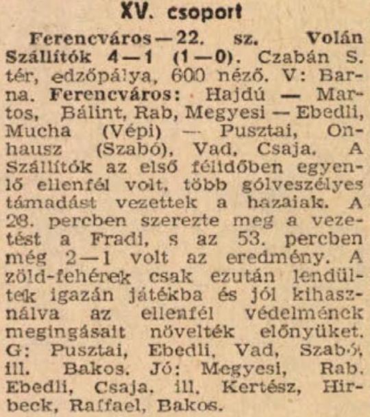 „Az első félidőben kiegyenlített, pompás küzdelem volt, szünet után hengerelt a Ferencváros” (1948 – Csepel)