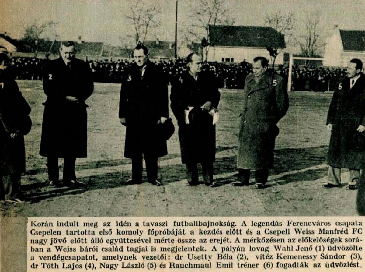 1938. Csepel – Ferencváros 2-7, Edzőmérkőzés