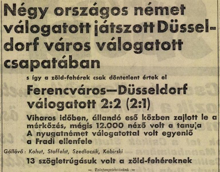 1932. Düsseldorf válogatott – Ferencváros 2-2, nemzetközi barátságos