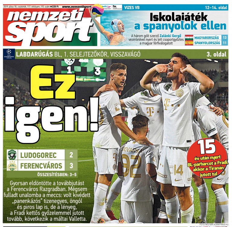 2019. Ludogorec – Ferencváros 2-3, BL selejtező