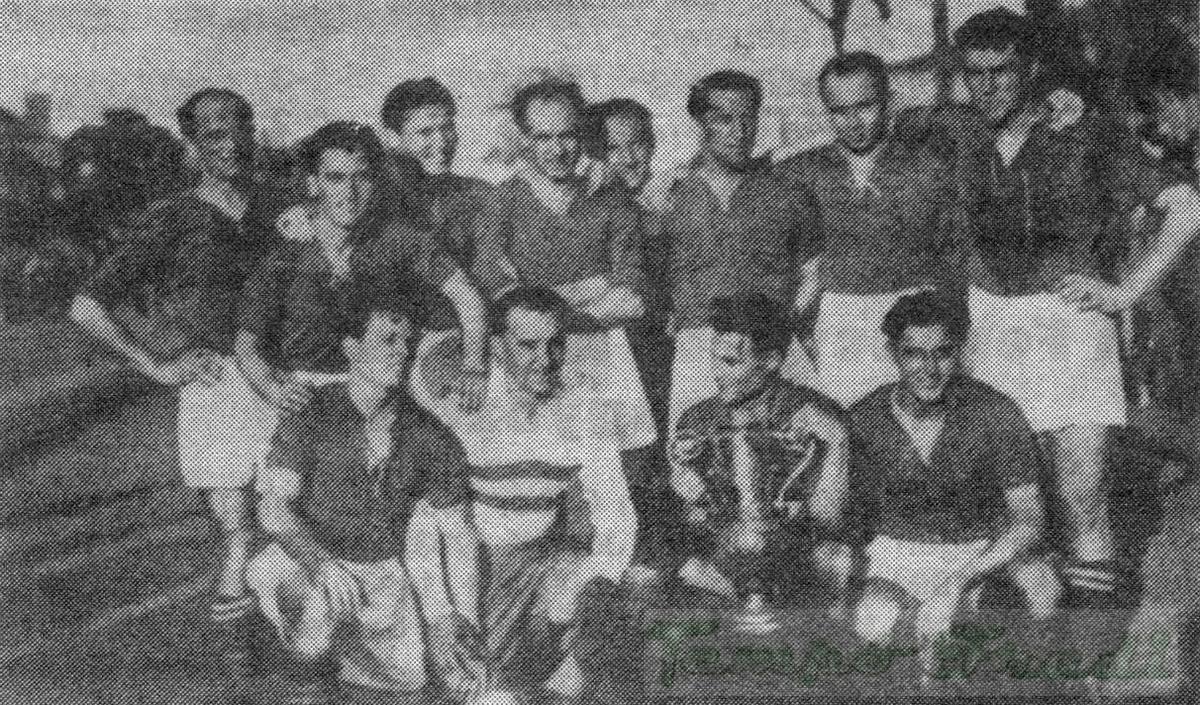 … közvetlenül a kupadöntő után és a légiriadó előtt… Állnak (balról): Finta, Ónodi II., Gyetvai, Sipos, Lázár, Tátrai, Sárosi III. Elől: Nagy II., Csikós, Sárosi dr., Rudas