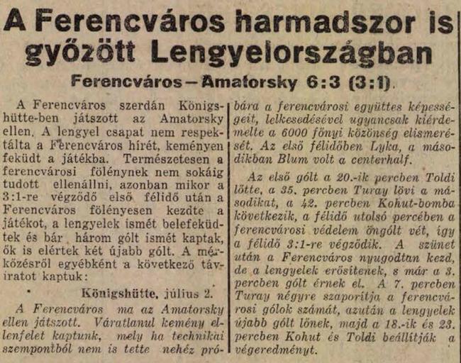 1930. Amatörski K. – Ferencváros 3-6, nemzetközi barátságos