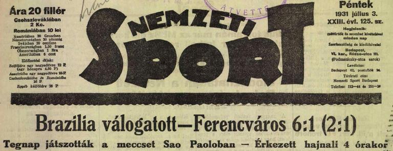 1931. Brazilia – Ferencváros 6-1, nemzetközi barátságos