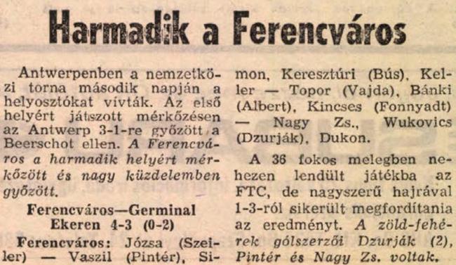 1989. Germinal Ekeren – Ferencváros 3-4, Nemzetközi torna