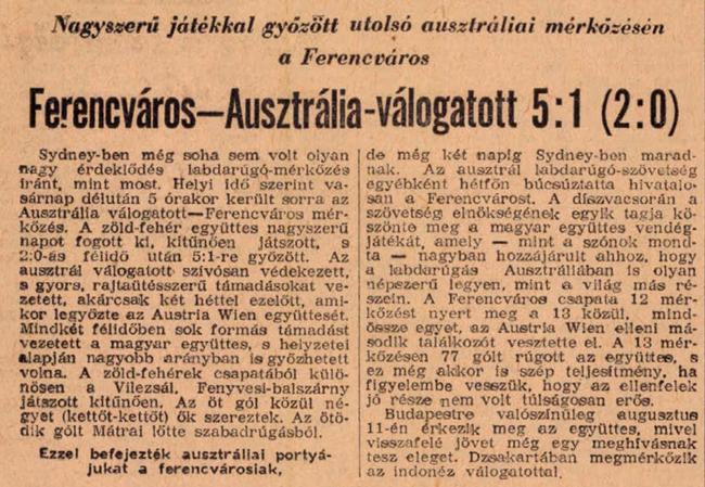 1957. Queensland válogatott – Ferencváros 1:5, nemzetközi barátságos