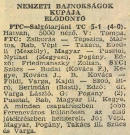 Ezen a napon játszotta utolsó válogatott mérkőzését az FTC csapatából: