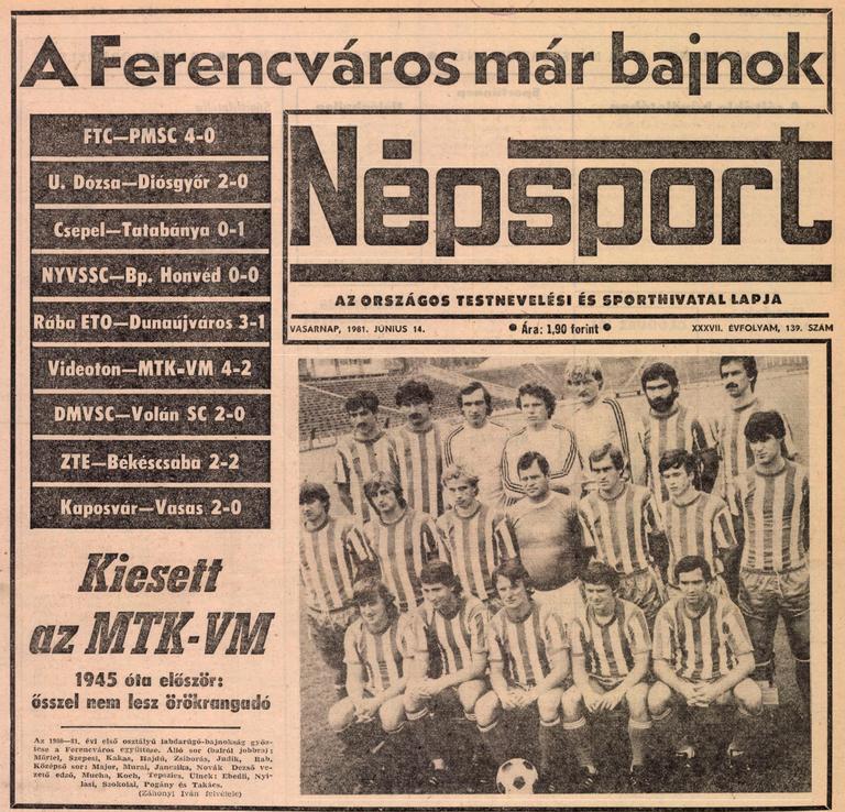A bíró hármas sípszava után végleg elszabadultak a boldogság „indulatai”. A szurkolók minden gond nélkül rohanhattak a pályára, ölelve csókolva az éppen arra „repkedő” zöld-fehér játékost, akik legalább fél óráig többet voltak a levegőben, mint a zöld gyepen. Mire a játékosok bejutottak az öltőben, a szurkolók már „körbefogták” a székházat és addig skandálták a „Örülhet falu, város — bajnok lett a Ferencváros!”, amíg nem jöttek ki ismét a játékosok, kezükben már pezsgős üvegekkel, együtt kiáltották a világnak: 23. alkalommal is bajnok lett a Ferencváros. Ez volt Novák Dezső első edzői aranyérmet, aki 1973-ban két alkalommal is ült megbízottként néhány meccsen a Fradi kispadján, de az 1980/81-s szezon volt az első teljes évadja…és nem is az utolsó.