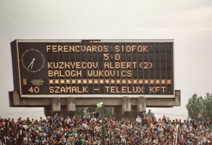 „A szakadó eső sem tántoríthatta el a ferencvárosi szurkolókat. Mintegy másfél órával a mérkőzés kezdete előtt már zöld-fehér színekben pompázott az Üllői út környéke. A kezdő sípszót megelőzően léggömbök tucatjai indultak útjukra…A 4. percben Fodor ívelt be jobbról szögletet, a berobbanó Kuznyecov pedig közelről fejelt Bíró kapujába (1:0)… 21. percben növelték előnyüket a zöld-fehérek: Páling húzott el a jobb oldalon, középre adását Albert két védő között, a 11-es pontról bólintotta a siófoki hálóba (2:0)…Hét perccel az első félidő vége előtt újra Fodor végzett el szögletrúgást. Ezúttal Balogh Gábor emelkedett a legmagasabbra, a fejest Bíró most sem tudta hárítani (3:0)…Az 50. percben Lipcsei labdájával Albert lépett ki a védők közül, majd laposan lőtt a bal alsó sarokba (4:0)…Öt perccel a lefújás előtt aztán Wukovics váratlanul lövésre szánta el magát a 16-os vonaláról, labdája lepókhálózta a bal felső sarkot (5:0)… közönség hatalmas tapssal jutalmazta a hazaiakat, akik valóban felejthetetlen játékkal győzték le a Siófokot. A játék képe alapján a gólkülönbség is reális.” (1992 – Siófok) | Tempó, Fradi!: Bajnokavatásra készültünk, több mint 20 ezer néző reménykedett abban, hogy a Vác botlik, de nyert, így maradt az 1 pontos előny és a döntés az utolsó fordulóban, Diósgyőrre „költözik”…