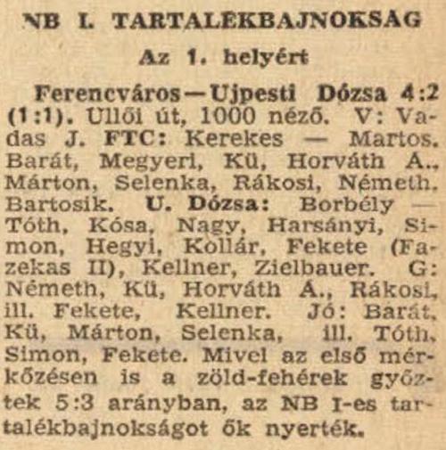 1953. Bp. Vasas – Bp. Kinizsi 1:2, NB1
