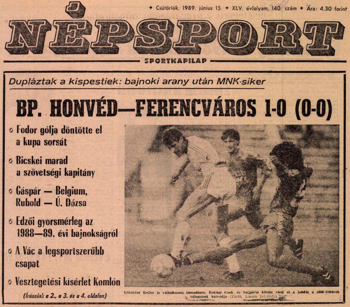 1989. Bp. Honvéd – Ferencváros 1-0, MK döntő