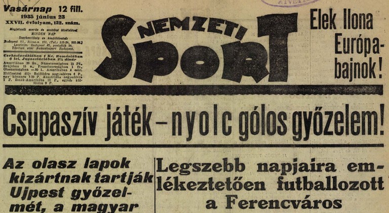 „– Ön is? – Én is! – Fél hat tájban a Körút és az Üllői út sarkán zajlottak le ilyen beszélgetések, innen indult a legnagyobb tömeg a pálya felé. Enyhén borús az ég, időnként kisüt a nap, szél nincs, a pálya alaposan fel van locsolva. Pontosan háromnegyed 6 órakor autóbuszon érkeznek az olaszok a pálya bejárata elé. Piros melegítőben vannak a játékosok, akik szinte észrevétlenül vonulnak be az öltözőbe. A közönség kishitű. Nemhogy a Ferencváros továbbjutására nem gondolnak, de még győzelemre is alig. – Ezek fognak győzni! – mutogatnak a bevonuló olaszokra…Tévedtek. Nagyon nagyot tévedtek. Végre egy örömnap következet ránk a magyar futball utolsó időkben sanyarúra fordult történetében. Nem volt tehát hiába a sok intő és oktató szó. Nem volt hiába az a biztatás, amely játékosaink szívére apellált. A Ferencváros játékosai ezen a mérkőzésen megmutatták, ho gy nem halt ki belőlük a magyaros lelkesedés, de ami a legfontosabb, megmutatták azt, hogy bármilyen taktikai formációnak megvan az ellenszere és ha okosan játszunk az ilyen formációk ellen, akkor az egyéni képességek terén fennálló többlet mindig kifejezésre kell, hogy jusson. A Ferencváros legszebb napjaira emlékeztetően futballozott. Volt lendület, győzniakarás, okosság, gólratörés a zöld-fehérek játékában, amely tehát tiszta célfutball volt. Fenntartás nélkül lehet dicsőíteni ezt a grandiózus győzelmet, amely egy szebb jövő nyitánya lehet. A csatársorban újra csodálhattuk Sárosi nagy játékintelligenciáját. És ami ezúttal meglepett, túláradó játékkedvét, energikus harcikészségét. Négy gólt szerzett, melyből hármat büntetőből – mindhárom jogos volt!” (1935 – AS Roma)