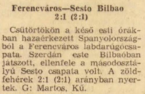 1972. Sestao SC – Ferencváros 1:2, nemzetközi barátságos