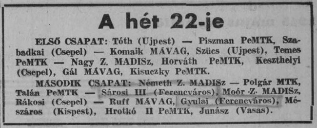 1934. Ferencváros – Kispest 7-4, NB1