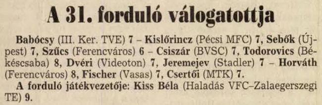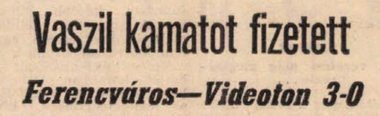 „A végig irányitó hazai együttes nagyobb arányban is győzhetett volna…A 28. percben Kincses baloldali szöglete után Limperger a felső léc alá fejelt (1:0). Öt perc elteltével Dzurják kapufája hozta Petryt nehéz helyzetbe, majd a 42. percben ujabb hazai gól született. Dzurják labdáját előbb Topor küldte kapura, ezt Petry még kiütötte, de Fischer találattal fejezte be az akciót (2:0). A 76. percben ritkán látható góllal állitotta be a Fradi a végeredményt. Bánki átadása után Vaszil a jobb oldalon husz méteren át vezette a labdát, majd a kaputól mintegy 12 méterről, a bal felső sarokba lőtt (3:0).” (1988 – Videoton)