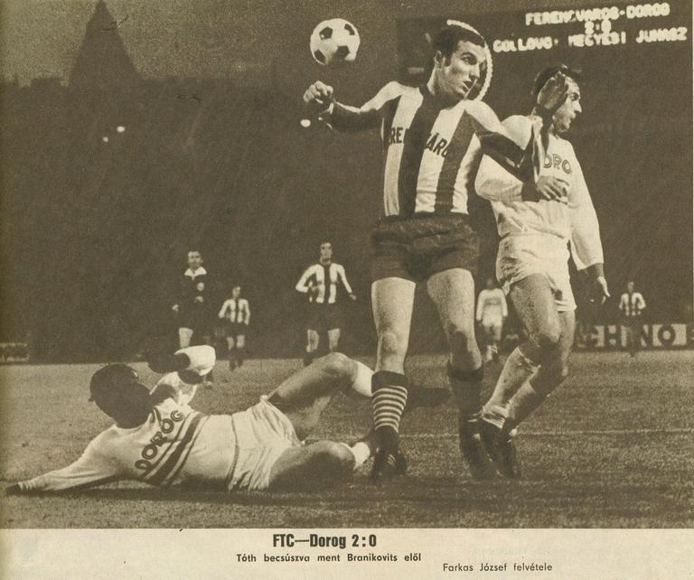 „Jó kezdés, érdekes középső harmad, edzőmérkőzés jellegű befejezés – röviden így lehetne összefoglalni a népstadionbeli 90 percet. Az elején a dorogiak játéka már-már sajnálatot ébresztett a nézőben: azaz már-már sajnáltuk, hogy ennek a csapatnak búcsúznia kell az élvonaltól. Ez a jó teljesítmény mindössze 15 percen át tartott. Utána, ha nem is jó, de mindenesetre ellenfelénél sokkal jobb, mozgékonyabb Ferencváros került mezőnyfölénybe. A második Ferencvárosi gól után azt hittük, hogy a zöld-fehérek most majd vissza akarnak fizetni az 1:0-ás vereségért és lendületes rohamaikkal kiütik a megroggyant bányászfiúkat. Nem ezt történt! Edzésként véve a bajnoki mérkőzést, leeresztettek, de győzelmük jogosságához így sem férhet kétség.” (1974 – Dorog)