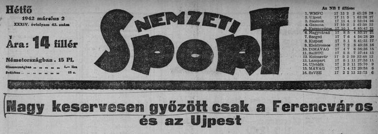 1942. MÁVAG – Ferencváros 1-2, NB1