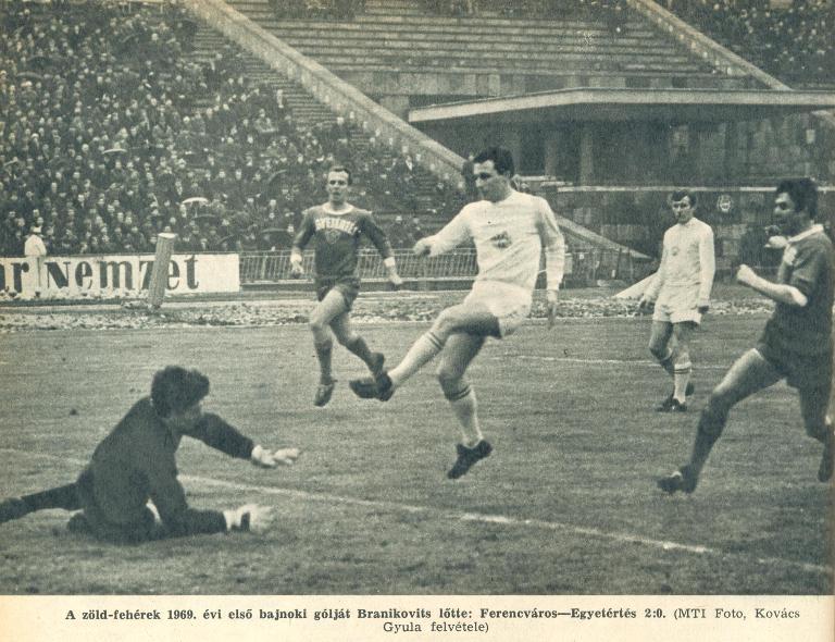 „Szűcs majd Szőke kapufalövése vezette be a mérkőzést, de a 22. percben már megszületett az első gól. Katona a szélről középre adott. A labda Branikovits elé került, aki senkitől sem zavartatva, 5 m-ről a kapuba lőtt, 1:0. Szünet után is folytatódott a zöld-fehér tűzijáték. Novák bombáját óriási bravúrral védte Varga, majd a 62. percben ismét a kapus volt a győztes: kivédte Novák tizenegyesét! A 80. percben Szőke elviharzott a jobb oldalon. Alberthez továbbított, aki meglátta, hogy Varga kimozdult a kapujából, és mintegy 8 m-ről élesen rúgta a labdát a jobb sarokba, 2:0.” (1969 – Egyetértés)