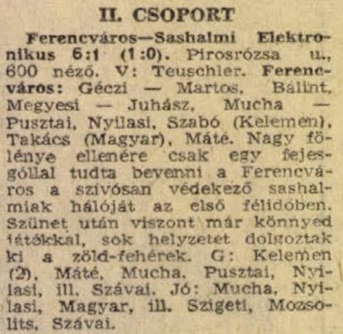 1949. Ferencváros – Nagykanizsai Olajmunkás 4-1, NB1