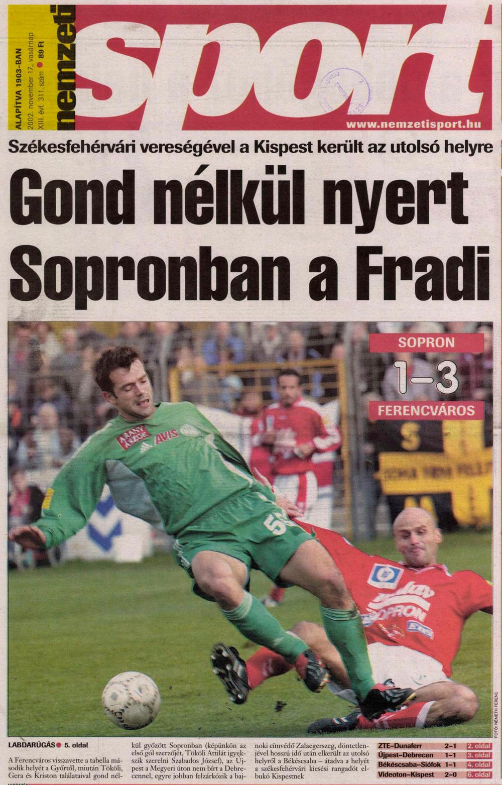 2002. Matáv-Sopron – Ferencváros 1-3, NB1