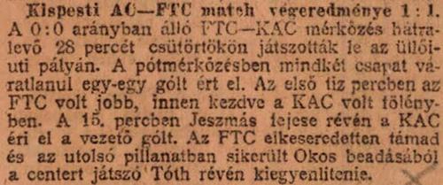 1919. Kispesti AC – FTC 1-1, NB1