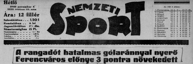 „A pálya pompás állapotban várja a mérkőző feleket. A gyep közepe egy kissé kopott ugyan, de novemberben ez megbocsájtható. Egyébként tükörsima a pálya. A nap erősen süt, igazán tavaszias az idő. A közönség is megszállja lelátót. Az őszi rangadó alaposan tisztázta a helyzetet a bajnoki táblázaton. A Ferencváros most kezdi igazolni a várakozásokat, amelyeket a bajnoki rajtnál fűztek hívei az idei szerepléshez. A ferencvárosi együttes újra formában van, kiváló gárdája, mindjobban beidegzett játékrendje egyaránt kiemeli a bajnoki mezőnyből. A tartalékos és átmeneti zavarokkal küszködő Újpest csak rövid időre tudta vitássá tenni a rangadó sorsát. Érdekes indult a mérkőzés, igazi rangadó hangulat volt s mintha ezúttal is igaz lett volna az a legenda, hogy a nagycsapatok mindig feljavulnak egymás mellé, ha eljön a rangadó ideje. A Ferencváros nagy esélyes indult, de a mérkőzés elején az Újpest nagy becsvággyal és lendülettel vetette magát küzdelembe. Amikor a Ferencváros belőtte az első gólját, még senki sem hitte volna, hogy Újpest eggyel sem tud válaszolni, bár látni lehetett, hogy a Ferencváros fokozatosan nyomul. Még a második Ferencváros-dugó után sem látszott elintézettnek a mérkőzés sorsa. A harmadik gól után az Újpest összeomlott s a Ferencváros nyomasztó fölénybe került. A mezőny legjobbja Sárosi dr. volt, aki sérülése miatt nem nagyon akarta vállalni a játékot, de utána mégis pályára lépett és három góljával döntő érdemeket szerzett a győzelem kivivasában.” (1940 – Újpest)
