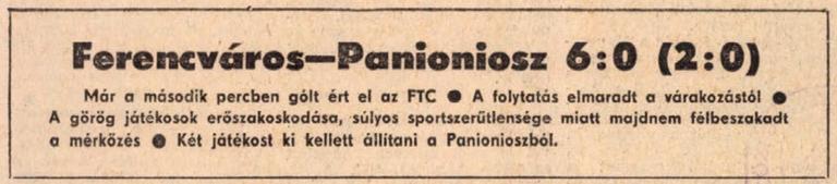1971. Ferencváros – Panionosz 6:0, UEFA