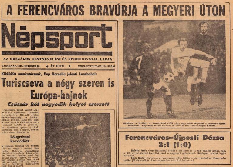 „Nagy meglepetés született a Megyeri úton. És, hogy ez így történt, abban jelentősen közrejátszott az, hogy a Ferencváros ezen a mérkőzésen sokkal nagyobb akarattal, lelkesedéssel játszott, mint az Újpest Dózsa. A zöld-fehérek az első perctől az utolsóig szívüket adták a győzelemért, elszántan harcoltak, míg a lilák, különösen az első félidőben láthatóan fölényeskedtek, könnyelműsködtek, azt hitték, hogy a nagyon tartalékos Ferencvárost így is legyőzhetik. A vendégek okosan is játszottak, később pedig, az első gól után, különös gondot fordítottak a védekezésre. A labda elvesztése után mindenki hátra futott, segítették egymást, aztán, ha megszerezték a labdát, bátran gyors támadásba lendültek. Volt erejük arra is, hogy a Dózsa egyenlítése után újabb gólt rúgjanak. A lilák játéka ezen a mérkőzésen körülményes, csapatjátékuk széteső volt. Helyzeteik így is adódtak, mivel azonban ezeket nem tudták kihasználni, még döntetlenre sem futotta az erejükből.” (1973 – Újpesti Dózsa)