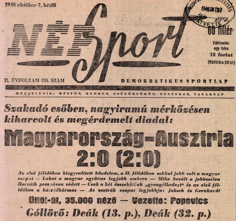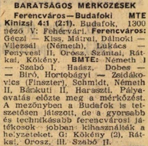 1945. Ferencváros – MTK 1-0, NB1 alapszakasz