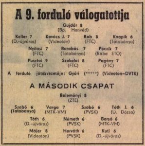 „1979. október 6-án, az Üllői úton lejátszott Ferencváros-Győr mérkőzés legjobbja Pusztai László, aki “a találkozó kiemelkedő egyénisége volt, Magyart és Szijártót is rendre állva hagyta, sorozatban küldte középre a jobbnál jobb labdákat, s a góllövők közé is feliratkozott.” A sportújság 9-s osztályzattal is “díjazta” a villámlábú szélsőnk teljesítményét, aki 33 évesen nem számított még “öreg” játékosnak. A mérkőzést a Fradi nyerte meg 5:2-re, mely sokáig nem vetítette előre a fölényes győzelmet. Pölöskei Gábor (1981-ben igazolt a Fradiba) már a 3. percben megszerezte a vezetés a vendégeknek és utána volt két veszélyes kitörése, de Zsiborás mindkétszer bravúrosan hárított. A fordulatot a második félidő hozta, amikor is az Ebedli-Nyilasi-Pusztai-Szokolai négyes “szárnyra” kapott és egymás után vezették a gólveszélyes támadásokat. Külön megemlítendő, hogy a második félidő közepén Friedmanszky edző melegíteni küldte Nagy Mihályt, akit Szokolai helyére tervezett a pályára küldeni. Középcsatárunk “megérezvén” a bajt, két perc alatt két gólt szerzett – a csere el is maradt, Nagy visszaült a kispadra.” (1979 – Rába ETO)