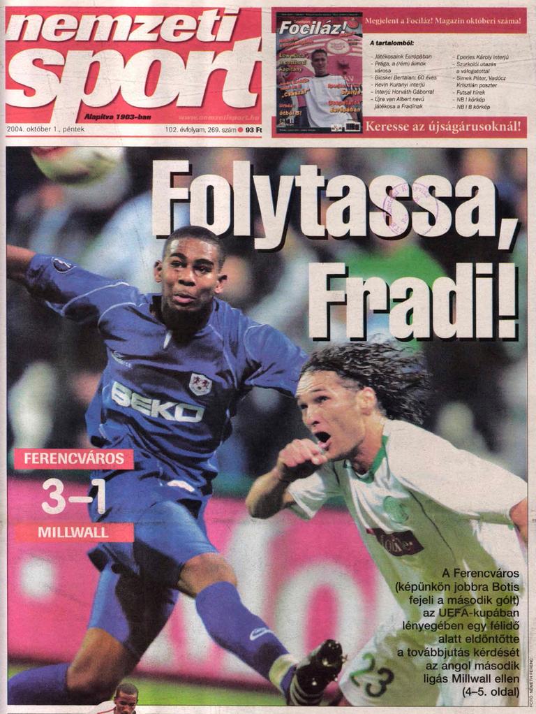 2004. Ferencváros – Millwall 3-1, UEFA selejtező