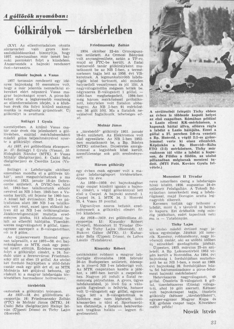 Kategória: Gólkirályok | Címke: 1957/58, Friedmanszky Zoltán, gólkirályok, Monostori Tivadar