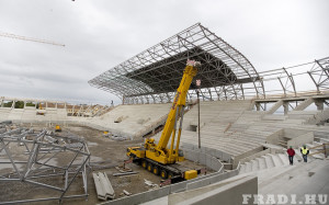Mindezt megerősíti Boros László építésvezető is, aki elmondta: az építkezésen egyedül a hajlítóüzem külföldi, egészen pontosan német cég. Ez a cég egyébként egész Európában az összes stadion tetőszerkezetéért felel.
