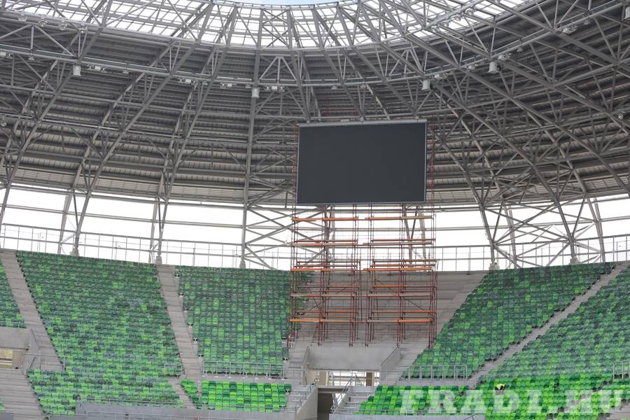 A B-középpel szembeni, kapu mögötti lelátórészen pedig ott állnak a „próbaszékek”, amelyek korábban szurkolóink álló- és ugrálóképességét is kibírták. Belegondolni is félelmetes, hogy körülbelül félév múlva, ezek tízezrei felelnek szurkolóink kényelméért.