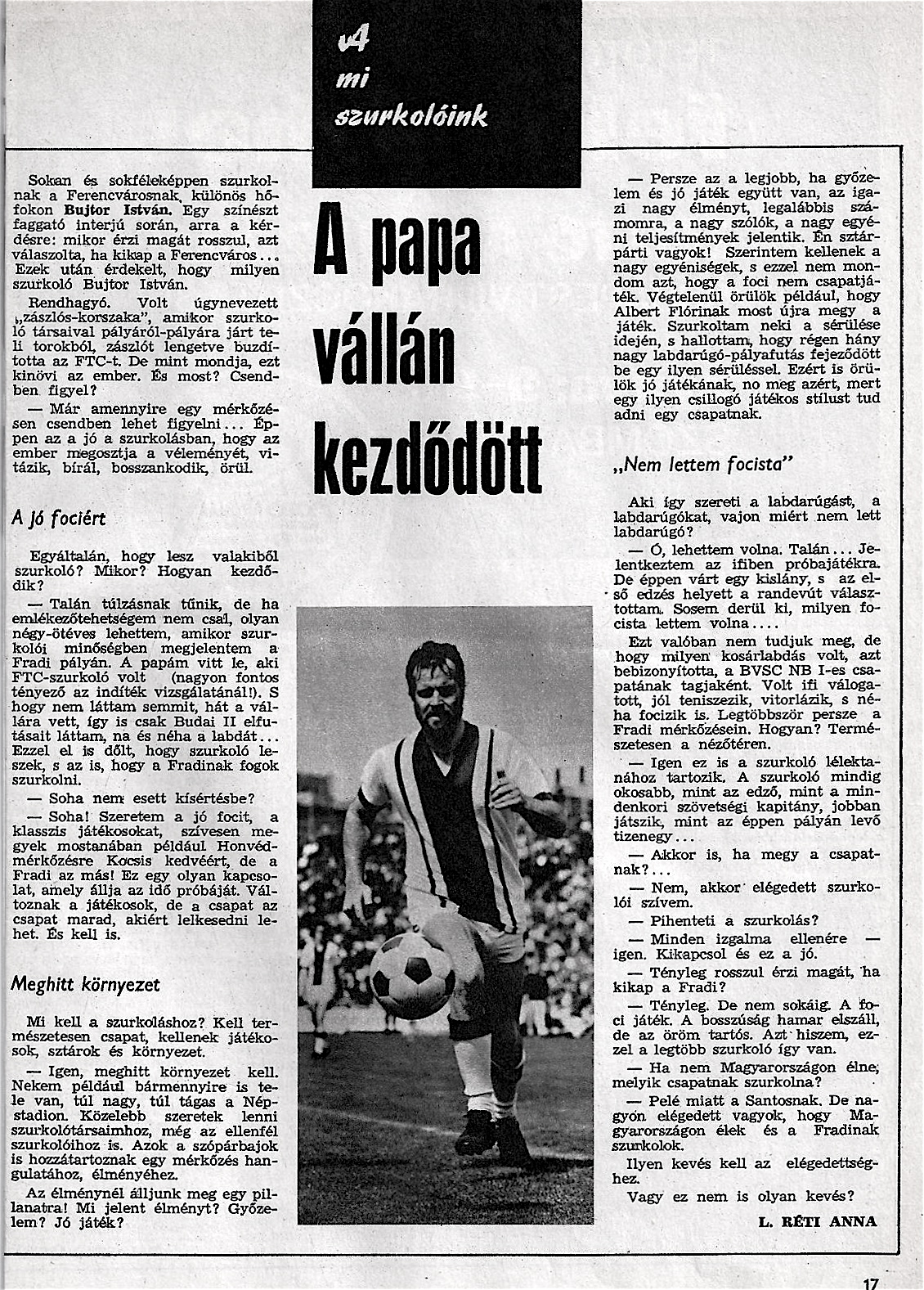 Az elmúlt napokban nagyon sokan, nagyon sokféleképpen emlékeztek meg Bujtor Istvánról. Szerkesztőségünk, egy régi riporttal emlékezik meg róla. A mi szurkolónkról, az örök Fradistáról.
