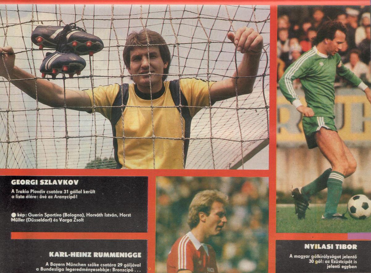 És ugyanez vonatkozik a helyezettekre is … Lennox Skóciából, Sideris Görögországból, Devillet Luxembourgból, Santrac Jugoszláviából, Bianchi Franciaországból, Riedl Ausztriából, Risi Svájcból, Van der Kuylen Hollandiából… és persze, a magyarok. Van köztük jó néhány, akiknek az Ezüst vagy épp Bronzcipő pályájuk legszebb emlékét jelenti, de van, aki ezt csak egy sikernek könyvelheti el a többi között.
