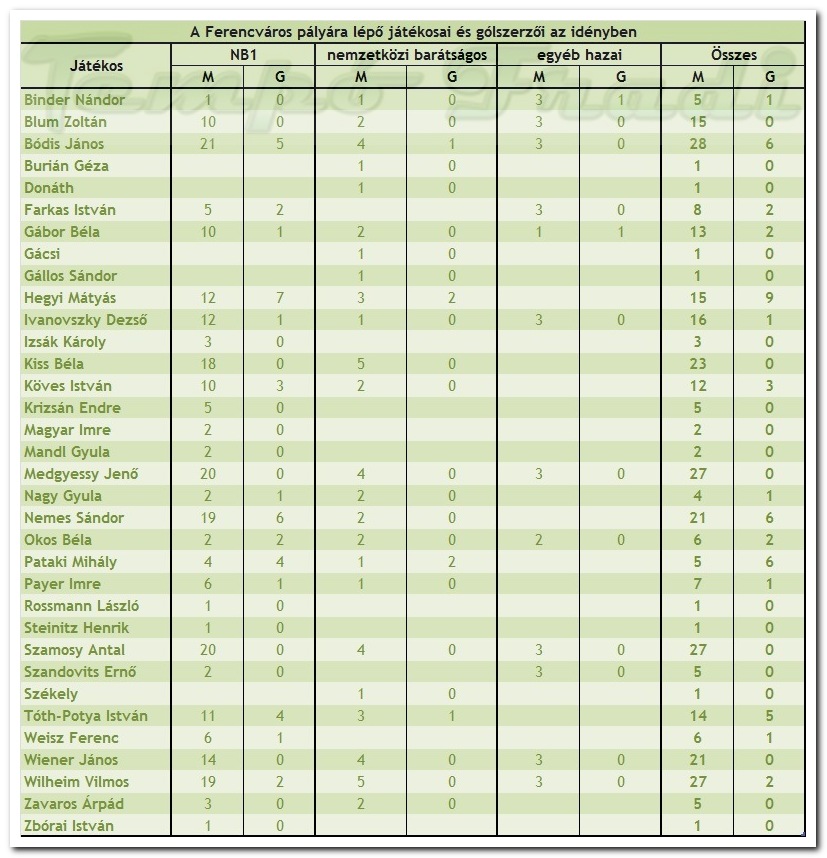FTC: Szamosy – Köves, Zavaros – Izsák, Kiss B., Medgyessy – Bódis, Hegyi, Nemes S., Ivanovszky, Tóth-Potya