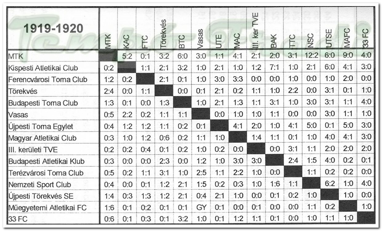 1919—1920-as bajnoki év. — Bajnok: a Magyar Testgyakorlók Köre, MTK.