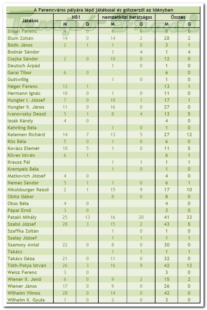 FTC: Bihari – Takács I., Wiener – Wilheim, Szabó J., Hermann – Weisz F., Tóth-Potya, Ivanovszky, Pataki M., Héger