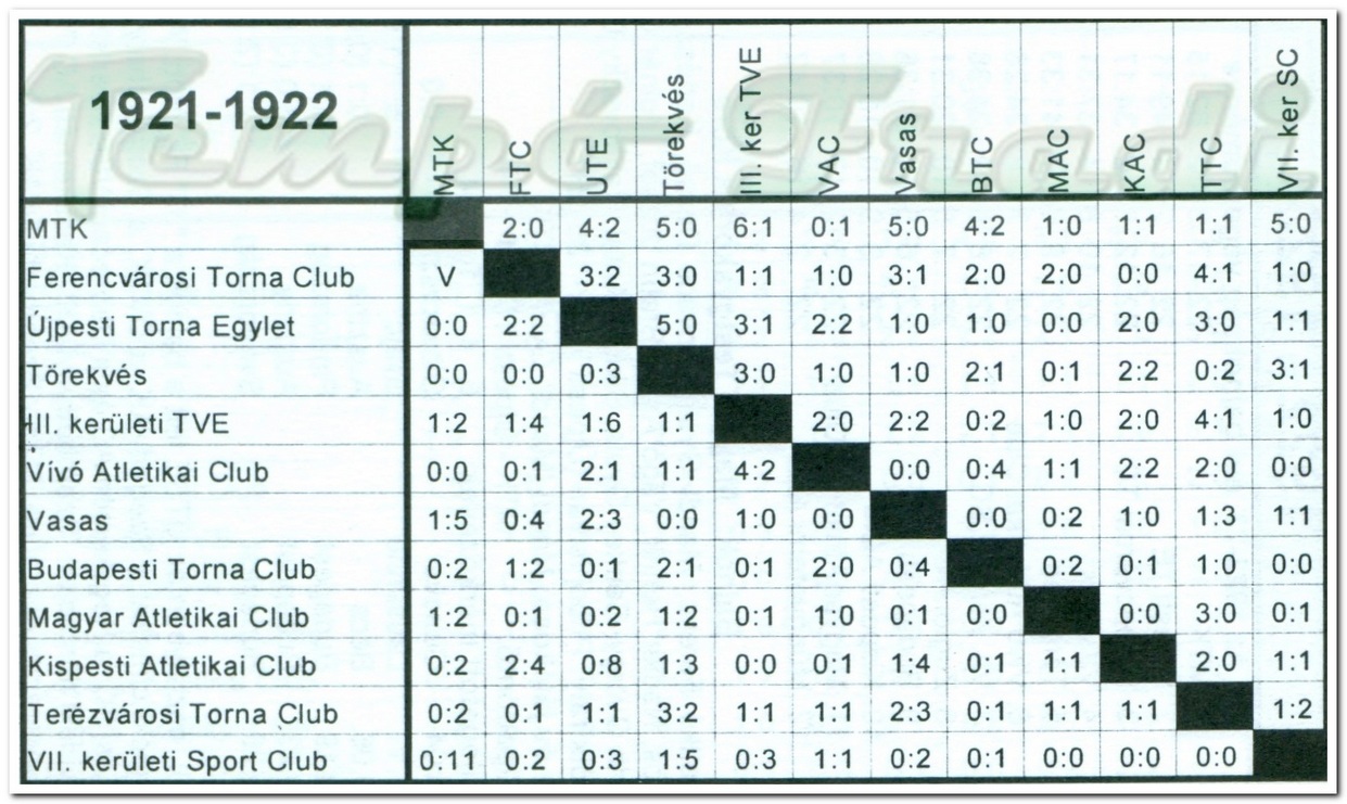 1921— 1922-es bajnoki év. — Bajnok: a Magyar Testgyakorlók Köre, MTK.