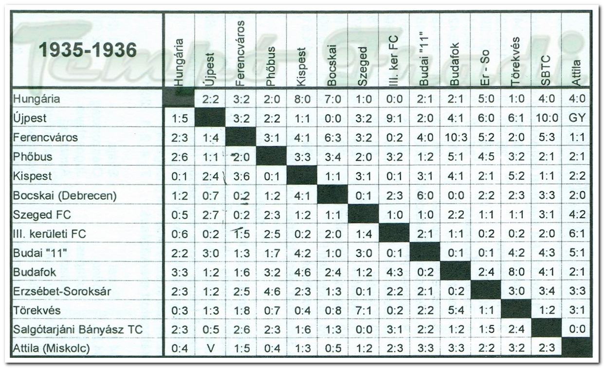 1935—1936-os Nemzeti Bajnokság. — Bajnok: a Hungária, II. a Ferencváros, III. az Újpest.