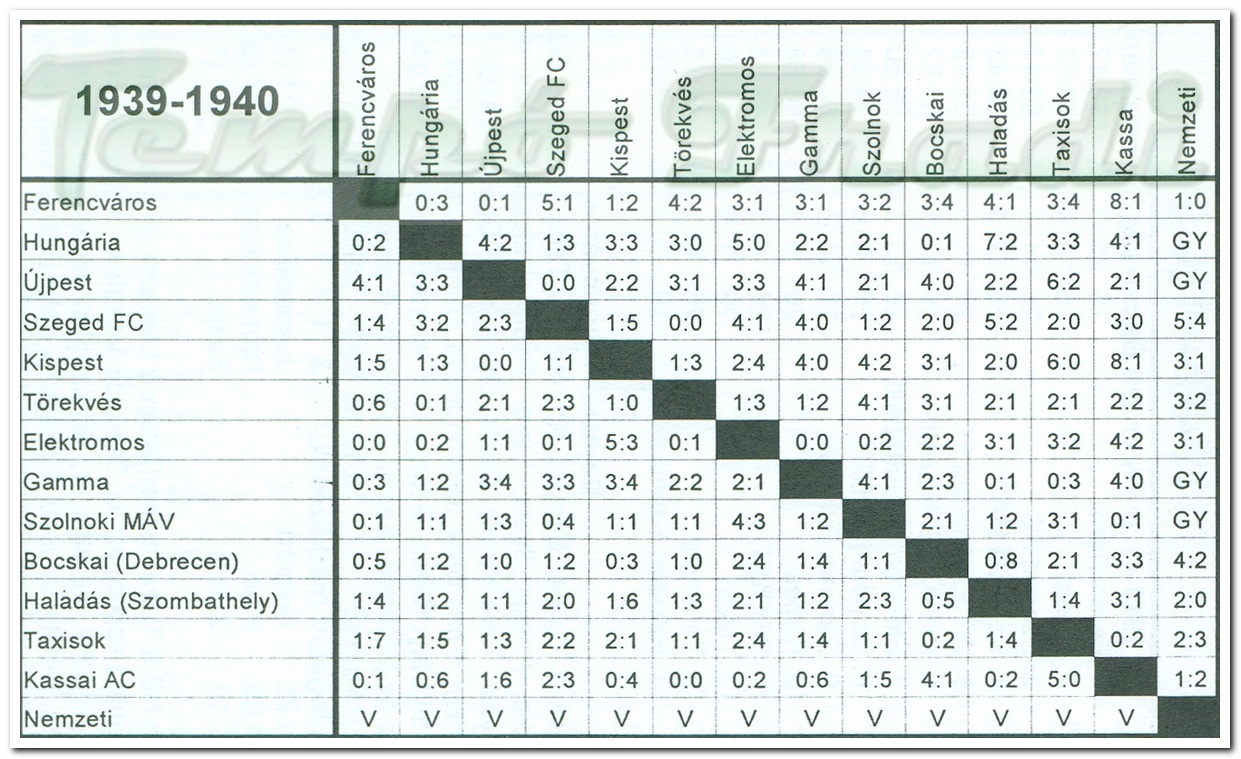| Az 1939/40. évi Nemzeti Bajnokság végeredménye | ||||||